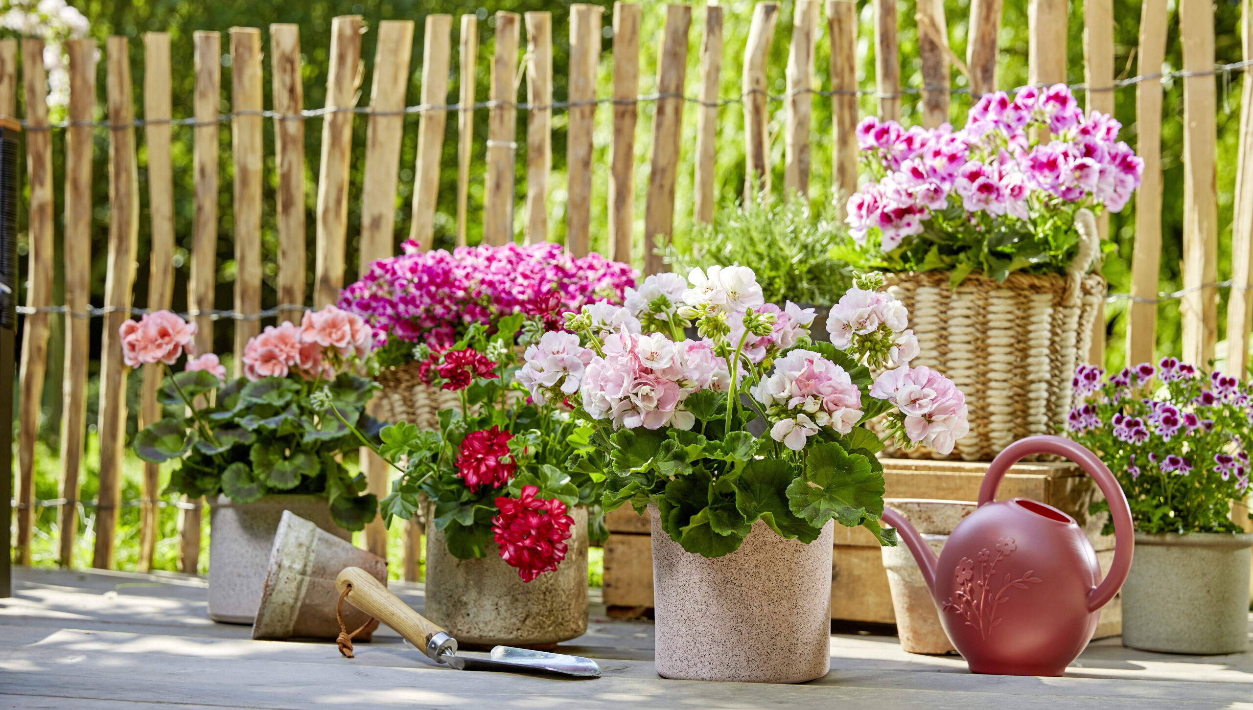 Ook op een terras of balkon kun je kiezen voor planten die goed tegen zon kunnen. In potten en bakken doen bijvoorbeeld geraniums, petunia’s en verbena het vaak uitstekend. Deze planten bloeien langdurig en zorgen voor veel kleur op zonnige plekken.