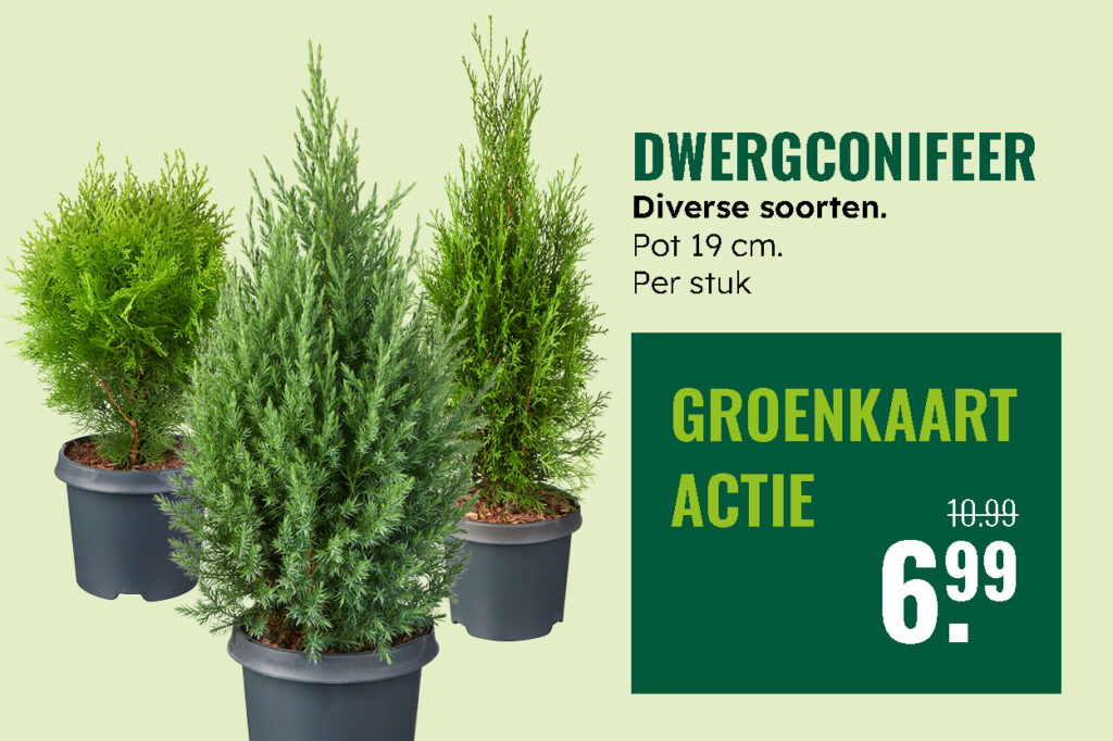 Je kunt weer extra profiteren met Jouw groenkaart. Wij zetten regelmatig een mooie plant in het zonnetje, welke jij met je groenkaart met extra korting kunt bemachtigen. Voor deze week is dat de dwergconifeer! De aanbieding is geldig van woensdag 5 mei t/m dinsdag 11 november.