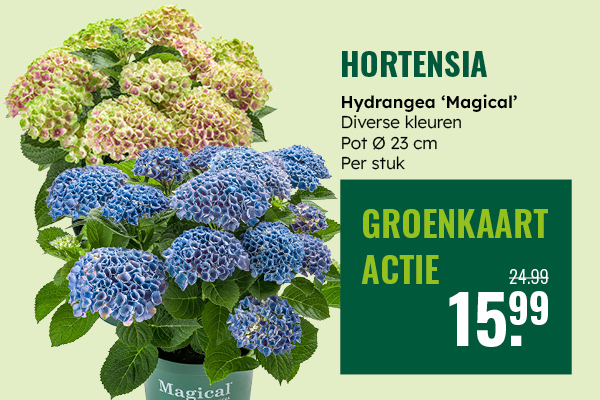 Met Jouw groenkaart kun je deze mooie Hortensia met extra voordeel kopen. Heb je nog geen groenkaart, waardoor je deze prachtige plant niet met korting kunt kopen? Haal de kaart dan snel op in jouw GroenRijk vestiging of download de app en maak zelf een digitale groenkaart aan. Hier kun je zien welke GroenRijk vestiging het dichtst bij je in de buurt is.