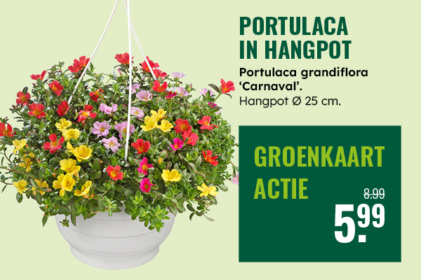 Met Jouw groenkaart kun je deze mooie portulaca met extra voordeel kopen. Heb je nog geen groenkaart, waardoor je deze prachtige plant niet met korting kunt kopen? Haal de kaart dan snel op in jouw GroenRijk vestiging of download de app en maak zelf een digitale groenkaart aan. Hier kun je zien welke GroenRijk vestiging het dichtst bij je in de buurt is.