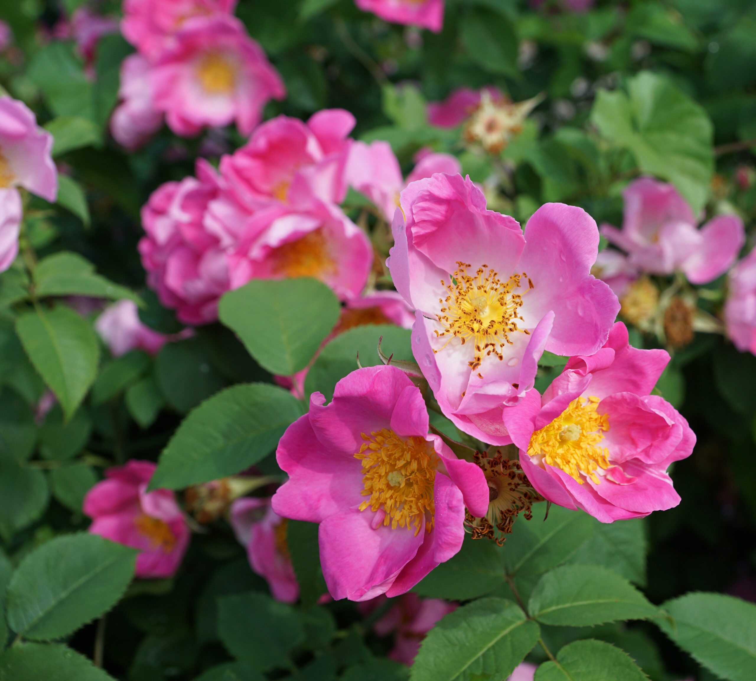 De Rosa ‘Bijenweelde’ is een sterke en rijkbloeiende struikroos die speciaal geliefd is bij bijen en andere nuttige insecten. De plant krijgt eenvoudige, open bloemen, waardoor het stuifmeel goed bereikbaar is voor bestuivers. Deze roos bloeit langdurig van het late voorjaar tot in het najaar en zorgt zo voor kleur én leven in de tuin. ‘Bijenweelde’ is onderhoudsvriendelijk, goed winterhard en geschikt voor borders, bijvriendelijke tuinen of als losse sierstruik.