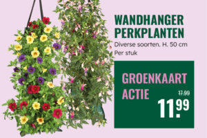 Wij zetten regelmatig een mooie plant in het zonnetje, welke jij met je groenkaart met extra korting kunt bemachtigen. Voor deze week is dat de wandhanger met perkgoed! De aanbieding is geldig van woensdag 16 t/m dinsdag 29 april.