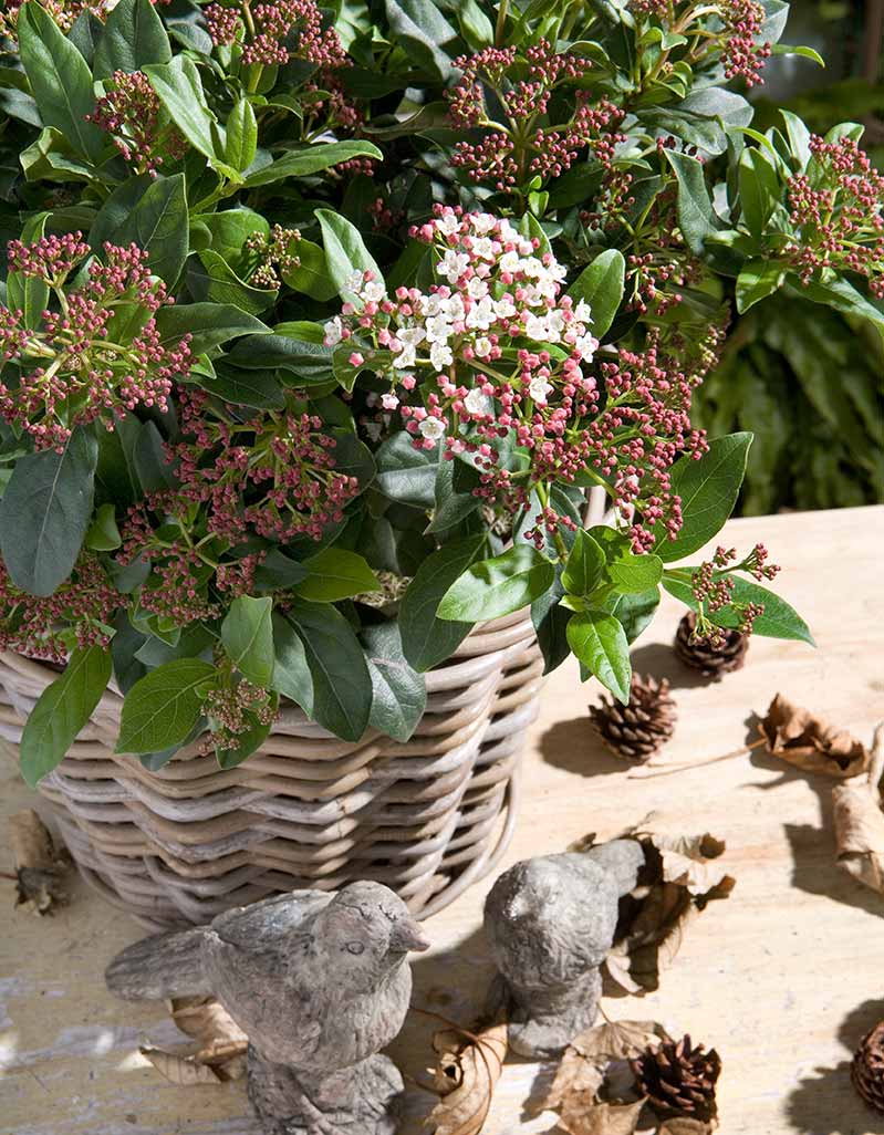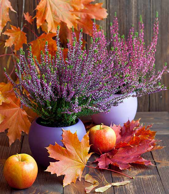 Ook in de herfst zijn er volop planten met bloemen in knalkleuren. Denk aan najaarsviolen, verkrijgbaar in een regenboog aan tinten en met mini- of maxibloemen. Of de bolchrysant, een ware eyecatcher met honderden bloemen per plant. En vergeet de groenblijvers niet! Laurierboompjes op stam of een Leucothoe met groen of rood blad zorgen voor structuur en kleur, zelfs in de winter.
