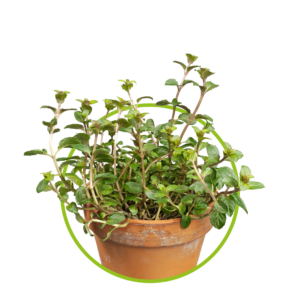 Sinaasappelmunt is een bijzondere verschijning. Zodra je het blad aanraakt, komt er een zachte citrusgeur vrij die net even anders is dan bij andere muntsoorten. Heerlijk in desserts, thee of als frisse twist in een kan water.