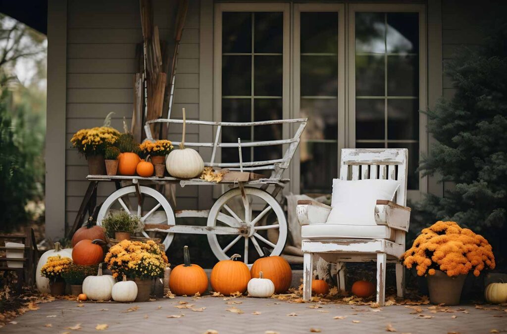 Geef je tuintafel of voordeur een herfstige make-over met een sfeervol pompoenstilleven. Combineer pompoenen en sierkalebassen in verschillende vormen en kleuren met verkleurde bladeren, kastanjes en sierlijke bessentakken zoals rozenbottel of meidoorn. Zet er eventueel een lantaarn of waxinelichtjes bij voor extra gezelligheid in de avond.