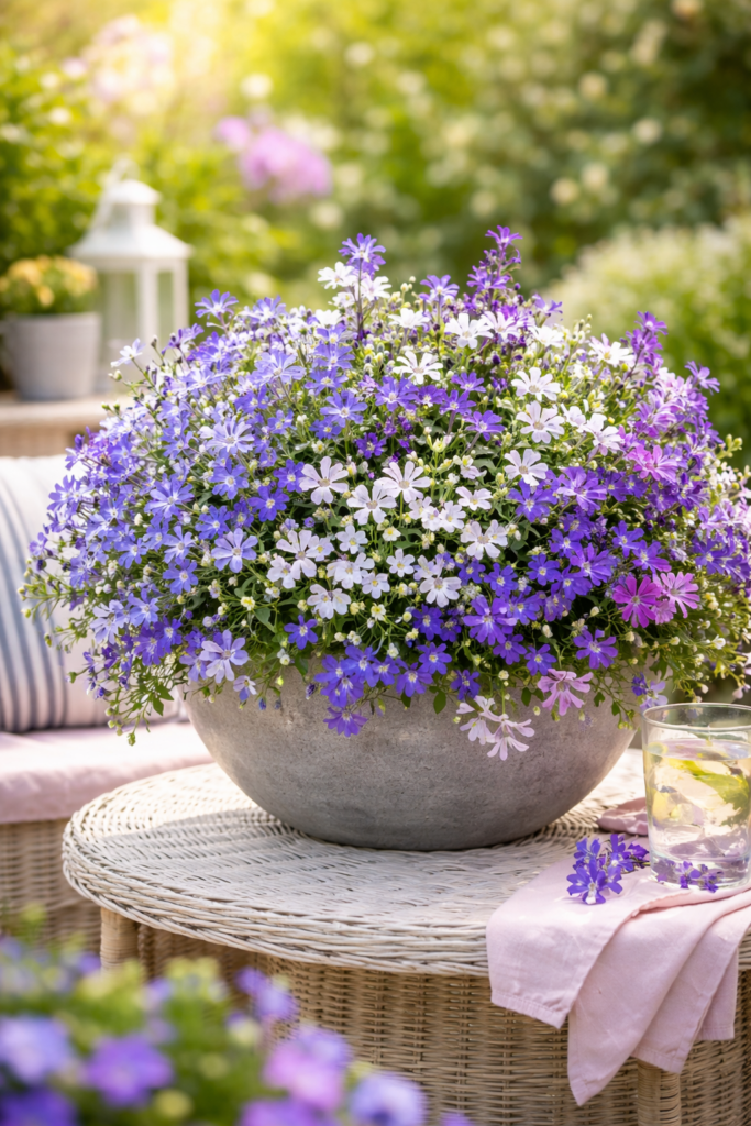 Zodra de eerste warme dagen zich aandienen, laten Felicitara en Scaevola zich van hun mooiste kant zien. Deze zomerbloeiers zorgen met hun frisse kleuren en sierlijke bloei direct voor een vrolijke, zomerse uitstraling. Felicitara valt op met haar fijne bloemetjes in heldere blauwtinten, terwijl Scaevola met haar waaiervormige bloemen in blauw, paars of wit een speels effect geeft. Samen vormen ze een prachtige combinatie in schalen, potten en balkonbakken.